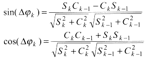 Таким образом, детектор должен измерять текущее приращение фазы исходного модулированного радиосигнала, и в случае обнаружения скачка определенной величины сопоставлять ему пару импульсов с полярностью, заданной табл. Можно показать, что при наличии отсчетов квадратур исходного радиосигнала: Sk и Ck, могут быть определены две функции, однозначно задающие величину «скачка» Djk: