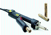 Нагреватель по-прежнему проволочного типа. PACE принципиально не изготавливает паяльники с керамическим нагревателем, так как керамика уступает меди в теплопроводности и не допускает сильного механического прижима наконечника к нагревателю. Эти два фактора затрудняют теплопередачу от керамического нагревателя к наконечнику и неизбежно приводят к значительному снижению температуры наконечника при пайке точек с повышенной теплоемкостью. В паяльниках РАСЕ медный с защитным покрытием наконечник по всей длине прижимается к медному сердечнику нагревателя с помощью бокового винта. Такое крепление исключает наличие воздушного зазора между нагревателем и наконечником, что в сочетании с совершенной системой термоуправления SensaTemp обеспечивает очень высокую термостабильность. Особенно это заметно при пайке многослойных плат. Несмотря на сильнейший теплоотвод в слои меди, оператор может работать на многослойке с минимально необходимой температурой, что исключает перегрев и дает стабильное качество, так как все этапы пайки выполняются при одинаковом тепловом режиме. Кроме того, наличие бокового крепежного винта позволяет менять наконечники на горячем инструменте за 5–10 секунд.