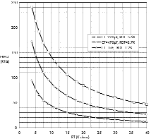 Задачей этого режима является обеспечение на лампе рекомендуемых производителем мощности и напряжения. Лампа находится в проводящем состоянии, и контур нагрузки представляет собой последовательное соединение LRES с параллельно включенными СRES и сопротивлением лампы. После включения транзистора с открытым стоком частота определяется номиналами конденсатора Ст и параллельно соединенных резисторов RRUN, Rт. Таким образом, рабочая частота является функцией сопротивления параллельно соединенных RRUN и Rт, а это означает, что мощность на лампе может быть запрограммирована выбором номинала RRUN. Рисунок 8 иллюстрирует зависимость рабочей частоты от эффективной величины сопротивления Rт (сопротивления параллельно соединенных резисторов).