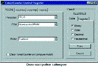 Кроме того, поддерживаются метки со стандартным именем прерывания. Встретив такую метку, компилятор автоматически вставит в соответствующее вектору прерывания место программы код необходимого безусловного перехода на нее. Имя таких меток можно выбрать через соответствующий пункт меню. Реализован также удобный интерфейс настройки таймеров, который избавляет от необходимости помнить, какой бит управляющего регистра что означает и ряд других сервисных возможностей.