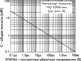 Примечание. (1) Форма импульса тока в соответствии с рис. 4. (2) Для симметричных диодов с Vbr=10 B и менее, значение ID в два раза меньше. В таблице указаны только параметры диодов с минимальными и максимальными значениями V(br).