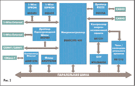 - один из МК серии DS80C390 для DS-TINI-1 или DS80C400 для DS-TINI-2;
