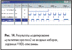 Рассмотренный способ задания входных воздействий может показаться весьма трудоемким. Так оно, наверное, и есть. Однако существует и более простая технология. Достаточно открыть VHDL-список цепей (файл mux2.vhd), созданный графическим редактором OrCAD Capture, и вставить в него уже знакомые нам VHDL-описания входных сигналов D0, D1 и A.
