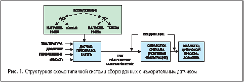 Структурная схема типичной системы сбора данных с измерительным датчиком