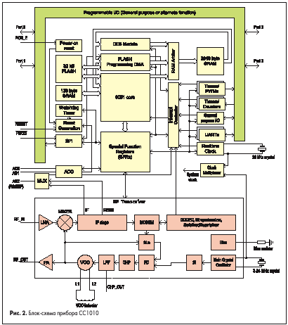 CC1010 — это CMOS RF-трансивер для частот 300 –1000 МГц, интегрированный с микроконтроллером 8051.
