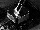 В последнем случае используются насадки, имеющие специальные канавки для заполнения их припоем. Насадка устанавливается на выводы микросхемы с обратной стороны платы. Припой в отверстиях расплавляется, и микросхему можно поднять пинцетом. Процесс занимает 15 секунд. Очистить выводы микросхемы и контактные площадки можно с помощью плетенки и паяльника с широким наконечником.