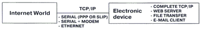 Первой проблемой все еще остается реализация интерфейса Ethernet. Несмотря на сдвиги, наметившиеся в этом направлении, однокристальные контроллеры 10Base-T Ethernet остаются все еще достаточно дорогими, что может привести к удвоению цены устройства при встраивании Ethernet-контроллера в несложные системы управления. Выходом здесь может служить создание некоторого базового блока, имеющего Ethernet-контроллер и транслирующего запросы из Internet в некоторую внутреннюю сеть (например, с использованием протоколов SPI или I2C), и нескольких исполнительных устройств или датчиков, к нему подключаемых.