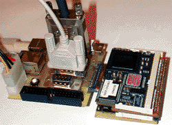 • плата ввода–вывода — содержит контроллер VGA/LCD монитора (CLGD-6235 фирмы Cirrus Logic), контроллер Ethernet и два дополнительных последовательных порта;