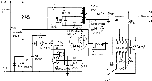 Рис. 2. Сетевой адаптер с использованием микросхемы UC3845