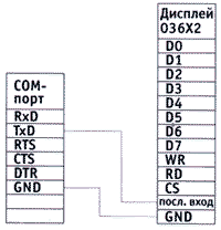 Рис. 7. Схема подлючения дисплея к последовательному порту