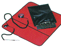 В набор входит подгоняемый под размер руки браслет и антистатический рабочий коврик красного цвета размером 559x610x0,53 мм с двумя большими карманами. Подключение к общей земле обеспечивает проводами от коврика длиной 1,5 м и от браслета длиной 3 м, подключенных к одной и той же точке. Когда техник присоединяет заземляющий провод к браслету и антистатическому коврику, а затем подключает его к земле, любой статический заряд, накопленный на теле или на проводящих деталях, уходит в землю.