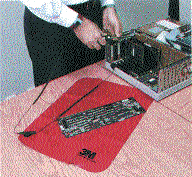 Чтобы предотвратить повреждение электронных компонентов статическим электричеством в ситуациях, когда техник работает с ним без защиты, 3М предлагает набор для защиты от статики при выездном обслуживании. Набор предназначен для быстрого и надежного снятия любых статических зарядов с обслуживающего персонала и обеспечивает свободную от статики поверхность для деталей.