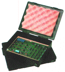 Кейсы серии 8520 из электропроводного материала для переноски одиночных печатных плат — это шарнирно скрепленные прессованные короба, предназначенные для безопасного хранения и транспортировки чувствительных к электростатике печатных плат. Они обеспечивают превосходную защиту как от физических воздействий, так и от электростатики. В настоящее время выпускаются 4 типоразмера: 8520 (31,7x203x254 мм), 8521 (31,7x229x305 мм), 8522 (50,8x431х457 мм) и 8523 (50,8x203x254 мм). Изнутри верхняя и нижняя сторона всех контейнеров покрыта некорродирующей пеной, снимающей статический заряд. Пена, обладающая низкой плотностью, демпфирует содержимое контейнера и предотвращает появление статического электричества. Для лучшего соответствия разнообразия контуров компонентов, размещенных на печатной плате, для обивки крышек используется пена с волнообразной поверхностью. Механическая обработка вставок позволяет предусмотреть свободное место для размещений наклеек, эмблем или предупреждающих надписей. Кейсы самого большого размера (8522) могут быть снабжены ручкой для переноски.