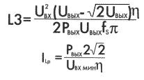Для рассчитанного по формулам индуктора (L3) должен быть выбран такой сердечник, чтобы его насыщение не происходило даже в случае наибольшего возможного тока индуктивности (ILp) для выбранного диапазона питающих напряжений.
