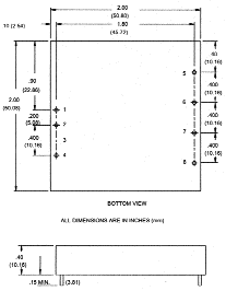 Большая часть преобразователей выпускается в корпусах, с размерами и цоколевкой, соответствующими промышленному стандарту «de-facto». Такая универсальность позволяет без труда заменять модули производства различных фирм и различных параметров в серийно уже выпускающихся изделиях. Сейчас DC/DC-преобразователи от 10 до 15 Вт чаще всего упаковываются в корпуса 1" x 2" (рис. 3), а от 15 до 25 Вт — в корпуса 2" x 2" (рис. 4). С развитием технологии в ближайшее время ожидается перевод 10-ваттных преобразователей в корпус DIP-28, а 20-ваттных — в корпуса 1" x 2".