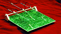 Процесс получения термопрофилей достаточно прост. Сначала необходимо правильно установить все три термодатчика на печатную плату. Для удобства крепления термодатчиков прилагается специальный крепежный штатив, позволяющий устанавливать датчики на платы практически любых размеров в интересующих точках и фиксировать сигнальные провода (рис. 4).