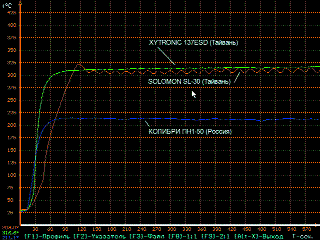 На рис. 5 показана копия экрана компьютера после измерения температурной динамики жал паяльников различных паяльных станций. При тестировании регуляторы температуры были установлены на одинаковые температуры. Измерения проводились с помощью измерительных адаптеров.
