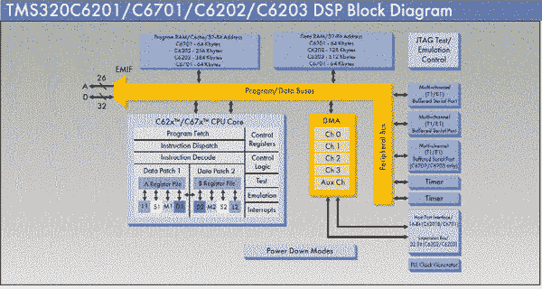 Рассмотрим свойства семейства TMS320C64x. Сразу следует отметить, что оно создавалось в рамках платформы TMS320C6000, ориентированной на достижение максимального быстродействия при решении задач ЦОС (цифровой обработки сигналов). Принадлежность к платформе 'С6000 означает полную программную совместимость семейства 'C64x с серийно выпускаемыми семействами 'C62x и 'C67x, что дает возможность вести отладку программ для нового семейства уже сегодня, пользуясь существующими отладочными средствами. Таким образом, огромный объем программных наработок может быть перенесен на новые ЦСП с минимальными временными затратами.