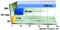 Перечисленные достоинства относятся практически ко всем ЭЛ-дисплеям, выпускаемым компанией Planar, а не к отдельным специальным или улучшенным моделям. Преимущества ЭЛ-технологии перед другими наглядно иллюстрируют гистограммы на рис. 3–5 и табл. 1, исходящие из усредненных для каждого типа дисплеев параметров.