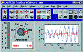 Передняя панель в TestPoint составляется обычным способом из набора компонентов в окне Stock (рис. 1). Имеется стандартный набор органов управления и индикации, но с ограниченными возможностями. В частности, для графического дисплея не предусмотрены функции сжатия/растяжки и курсоров (маркеров). Перечень всех выбранных из меню Stock объектов (в том числе и не отображаемых на передней панели), необходимых для управления программой, обработки данных и т. п., содержится в специальном окне — панель объектов (слева внизу на рис. 1).