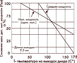 Постоянная рассеиваемая мощность при Т=50°, длине выводов 9,5 мм |