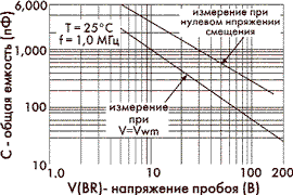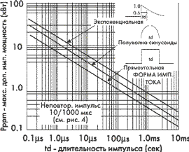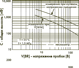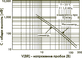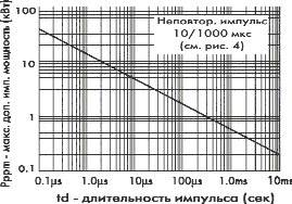 Примечание. (1) Форма импульса тока в соответствии с рис. 4. (2) Для симметричных диодов с Vbr=10 B и менее, значение ID в два раза меньше. В таблице указаны только параметры диодов с минимальными и максимальными значениями V(br).