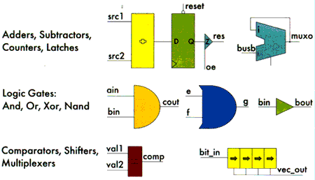 На рис. 8 показаны логические объекты, поддерживаемые мастером логики. В рамках одного занятия невозможно рассмотреть все особенности работы с таким мощным и удобным средством, как StateCAD. В следующем занятии мы продолжим рассмотрение особенностей работы со средствами визуальной разработки цифровых устройств.