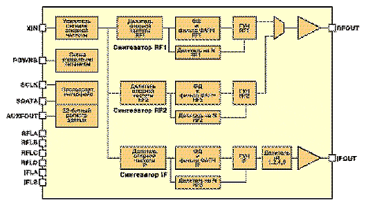 Синтезатор частот RF1 (2,4 ГГц)/RF2 /IF |