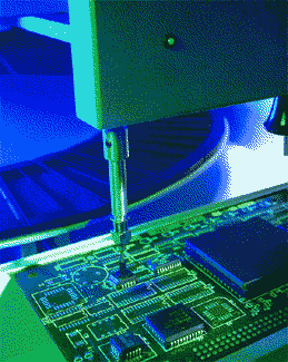 Теперь подробнее об этапах сборки. Первоначально на плату необходимо нанести пасту или клей. Это можно сделать ручным способом или автоматически. Паста наносится на все контактные площадки, а клей — на места крепления компонентов. Нанесение возможно как через трафарет, который обеспечивает практически стопроцентную повторяемость, так и на каждую точку отдельно. Устанавливать компоненты можно вручную, ручными манипуляторами, полуавтоматическими манипуляторами и автоматическими установщиками.