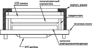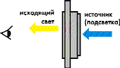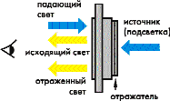 в) Нет ни отражающего, ни полуотражающего рефлектора — необходима только подсветка. Чаще всего используется с негативными изображениями |