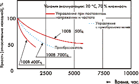 Рис. 3. Срок жизни EL-подсветки, зависимость срока жизни от установленной яркости