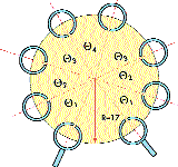 Конструкция рассматриваемого фильтра [5] представляет собой планарную структуру — диск MgO (er=9,85) диаметром 5,08 см и толщиной 0,5 мм, по периметру которого расположено восемь кольцевых резонаторов со щелью, толщина нанесенной пленки из YBCO-керамики — 0,5 мкм. Углы между осями, проходящими через середину щели и центр пластины, различны и определяются коэффициентом связи между соседними резонаторами.