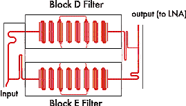 Блоки фильтров D и E соответствуют частотным диапазонам сотовой связи PCS в США: 1865…1870 и 1885…1890 МГц соответственно. Каждый фильтр представляет