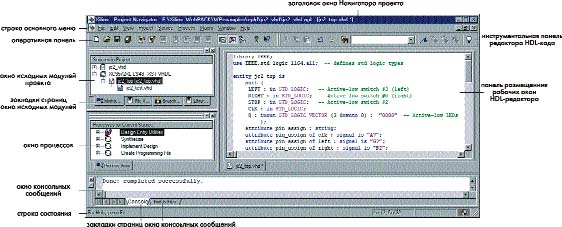 - панель для размещения рабочих окон редактора текстовых HDL-описаний проекта;