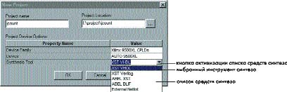 соответствии с выбранным семейством. Установка новых средств синтеза создаваемого проекта осуществляется щелчком левой кнопки мыши на требуемой строке предлагаемого списка.
