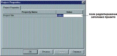 Окно исходных модулей нового проекта содержит две пиктограммы — заголовка и описания проекта. Вновь созданный проект имеет заголовок Untitled, установленный по умолчанию. В строке описания нового проекта отображаются основные параметры, заданные при его создании. Изменить заголовок проекта можно несколькими способами. Прежде всего, следует выделить строку заголовка проекта в окне исходных модулей, поместив на нее курсор мыши и щелкнув левой кнопкой, затем нажать кнопку просмотра и изменения характеристик текущего проекта, которая находится на оперативной панели Навигатора проекта (см. рис. 2). В результате на экране появляется диалоговая панель с таблицей параметров проекта (см. рис. 8). Она имеет ту же структуру, что и таблица, показанная на рис. 2, но содержит лишь один параметр — заголовок проекта Project Title. Для изменения заголовка проекта следует с помощью клавиатуры набрать требуемый текст в поле редактирования заголовка и ввести его нажатием кнопки ОК, находящейся в нижней части панели редактирования (см. рис. 8). Текст заголовка проекта в окне исходных модулей автоматически обновляется после закрытия панели редактирования.