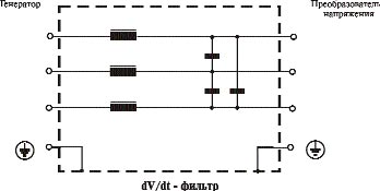 На рис. 1 представлена эквивалентная схема du/dt-фильтра ЭМП. Он выполняет процедуру вычитания дифференцированного сигнала из исходного. В результате фильтр сглаживает пики и исключает выбросы напряжения, обусловленные симметричной помехой. Однако он почти не влияет на напряжение помехи, существующее между проводами сети и заземлением, а также и на ток утечки.