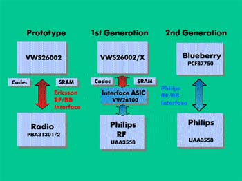 Прототип чипсета Bluetooth состоял из трансивера Ericsson PBA31301, работающего совместно с Baseband-контроллером VWS26002 через интерфейс, разработанный Ericsson.