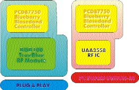 В настоящее время Philips занимается разработкой модулей Bluetooth третьего поколения, которые будут выполнены на одном кристалле. Ожидается, что они будут построены по схемам «трансивер + Broadband контроллер в одном корпусе» и «трансивер + контроллер соединений в одном корпусе» (рис. 4).