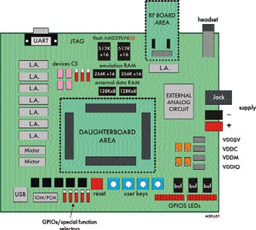 Доступны два типа наборов разработчика — BByK-F (Full — полный) и BByK-D (Demo — демонстрационный). Каждый из них содержит по две материнские платы (рис. 5), кабели для связи с компьютером, источники питания, телефонную гарнитуру, комплект дочерних модулей и CD-ROM с программным обеспечением и технической документацией. В набор BByK-F входят три дочерних платы с различными модификациями Baseband-контроллера (TB208, TB208E, TB81)