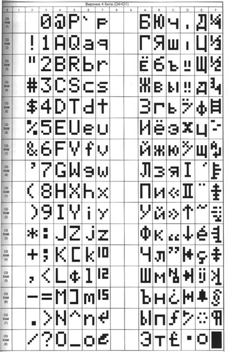 На рис. 2 показана структура памяти, выбранная автором. В контроллере ЖКИ расположена память ОЗУ, содержимое которой непосредственно отображается на поле ЖКИ. При желании из нее всегда можно считать и в нее можно записывать, создавая, таким образом, процедуры для работы с ЖКИ.