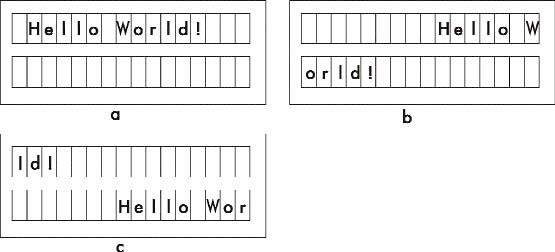 2. Метод сдвига выведенных данных. При вызове этого метода осуществляется проверка битов настройки, которые расписаны выше в параметрах. Этот метод удобно использовать в обработчике прерываний, включая его в тот момент, когда он необходим. Он реализует механизм сдвига информации либо влево, либо вправо, работает с одной-двумя строками, может сдвигать информацию за экран, либо замыкать циклически ее вывод на ЖКИ. Все эти параметры определяются битами настройки метода.