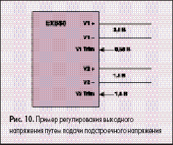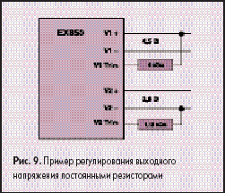Выходные напряжения такого преобразователя могут по-прежнему регулироваться посредством внешних резисторов или путем подачи напряжения, но регулировочные характеристики для каждого типа таких изделий с одинаковыми номиналами выходного напряжения будут уникальными. Ожидается, что данный способ будет применяться не очень часто, поскольку существуют простые и гибкие способы внешней регулировки напряжения.