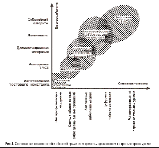Соотношение возможностей и областей применения средств моделирования на транзисторном уровне