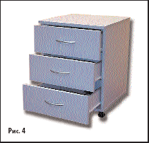 Закатывается под монтажный стол. В трех выдвижных ящиках размещается документация или инструмент.