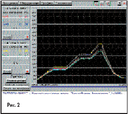 Прибор комплектуется новой программой «ТЕРМОПРО–ЦЕНТР», позволяющей обслуживать одновременно два прибора. Таким образом, можно получать шесть графических зависимостей изменения температуры от времени с шести датчиков, закрепленных на объекте измерения (рис. 2). Полученные термографики сохраняются на жестком диске компьютера для их дальнейшего исследования, сравнения и распечатки. В поставку включена специальная программа для проверки точности показаний прибора.
