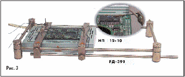 Для закрепления и перемещения печатных плат над рабочей поверхностью и фиксации на плате контрольных датчиков температуры разработан специальный рамочный держатель РД-390 (рис. 3).