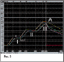 На рис. 5 приведен термографик, полученный при пайке печатной платы на поверхности прибора НП 12-10. Желтая кривая (a) — термопрофиль, заданный пользователем и отработанный устройством нижнего подогрева. Красная, зеленая и синяя кривые (b, c, d) — температуры трех контрольных датчиков, расположенных в различных точках печатной платы. При завершении оплавления припоя (точка А) для охлаждения включается вентилятор, расположенный над платой. После снижения температуры ниже 150 °С плату можно снять с поверхности нагревателя для дальнейшего охлаждения.