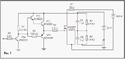 При анализе переходных процессов нужно иметь в виду и время нарастания коллекторного тока tr на транзисторах VT1ёVT3, так как оно соизмеримо с ограничительным условием для времени перезарядки Ciss (< 200 ns для MOS-управляемых тиристоров).