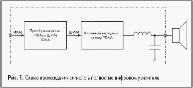 Несмотря на то что цифровые носители звуковой информации уже давно и прочно заняли свое место на рынке потребительской электроники, до сих пор в большинстве устройств аудиосигнал сохраняет свою цифровую форму только на стадиях декодирования и, возможно, вспомогательной постобработки с целью спектральной коррекции, адаптации под особенности помещения, преобразования двухканального стереосигнала в многоканальный и т. п. Затем сигнал снова преобразуется в аналоговую форму и поступает на традиционные аналоговые усилители мощности.